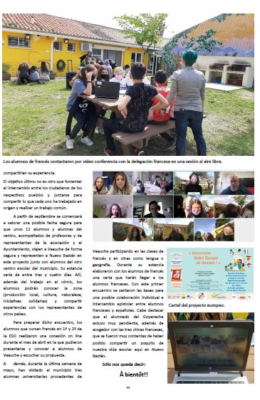Ce ne sont pas moins de 3 pages riches et agrémentées d'illustrations variées qui sont consacrées aux différentes actions de jeunesse en cours dans le nouveau journal publié par le Collège public de notre ville jumelée espagnole : EL GOYE, diminutif de El Goyeneche, nom du collège et donc de l'illustre fondateur de Nuevo Baztan.